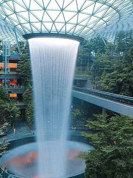 哪怕不坐飞机,星耀樟宜也值得专门来一趟!这座藏在机场里的“森林仙境”,核心景观40米高的室内瀑布“雨漩涡”免费观赏,周边的森林谷草木葱郁,仿佛置身天然氧吧。