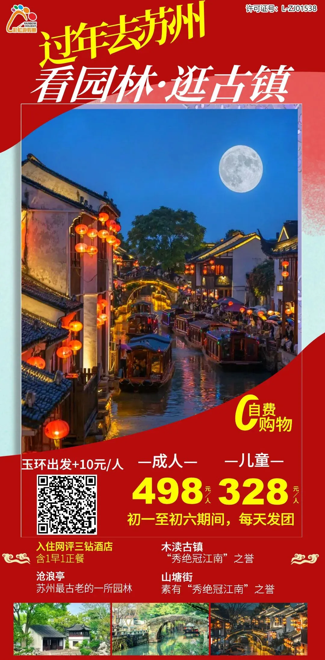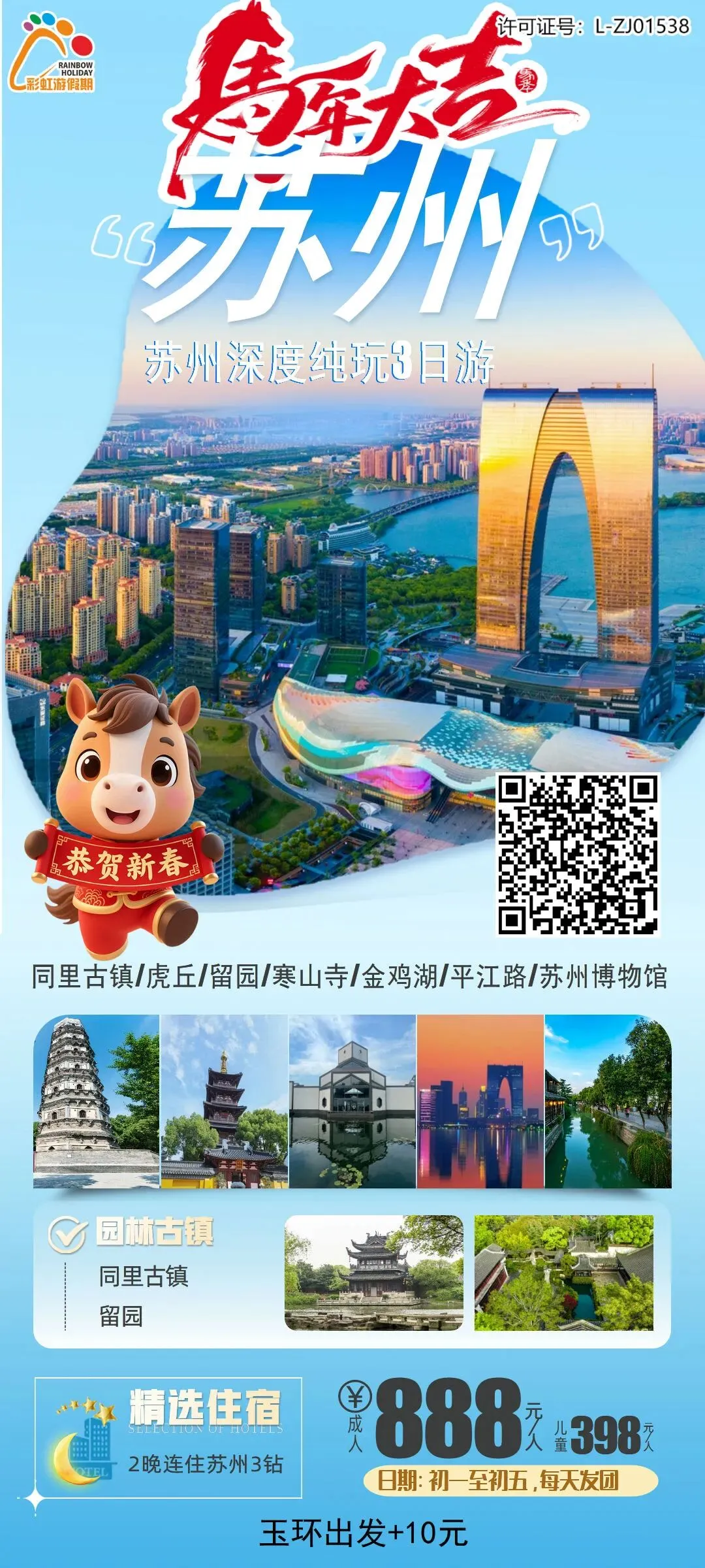 4.【水韵江南、苏州5A园林古镇】——苏州深度纯玩3日游 (同里古镇+虎丘+留园+寒山寺+金鸡湖+平江路+湿地公园+苏州博物馆)