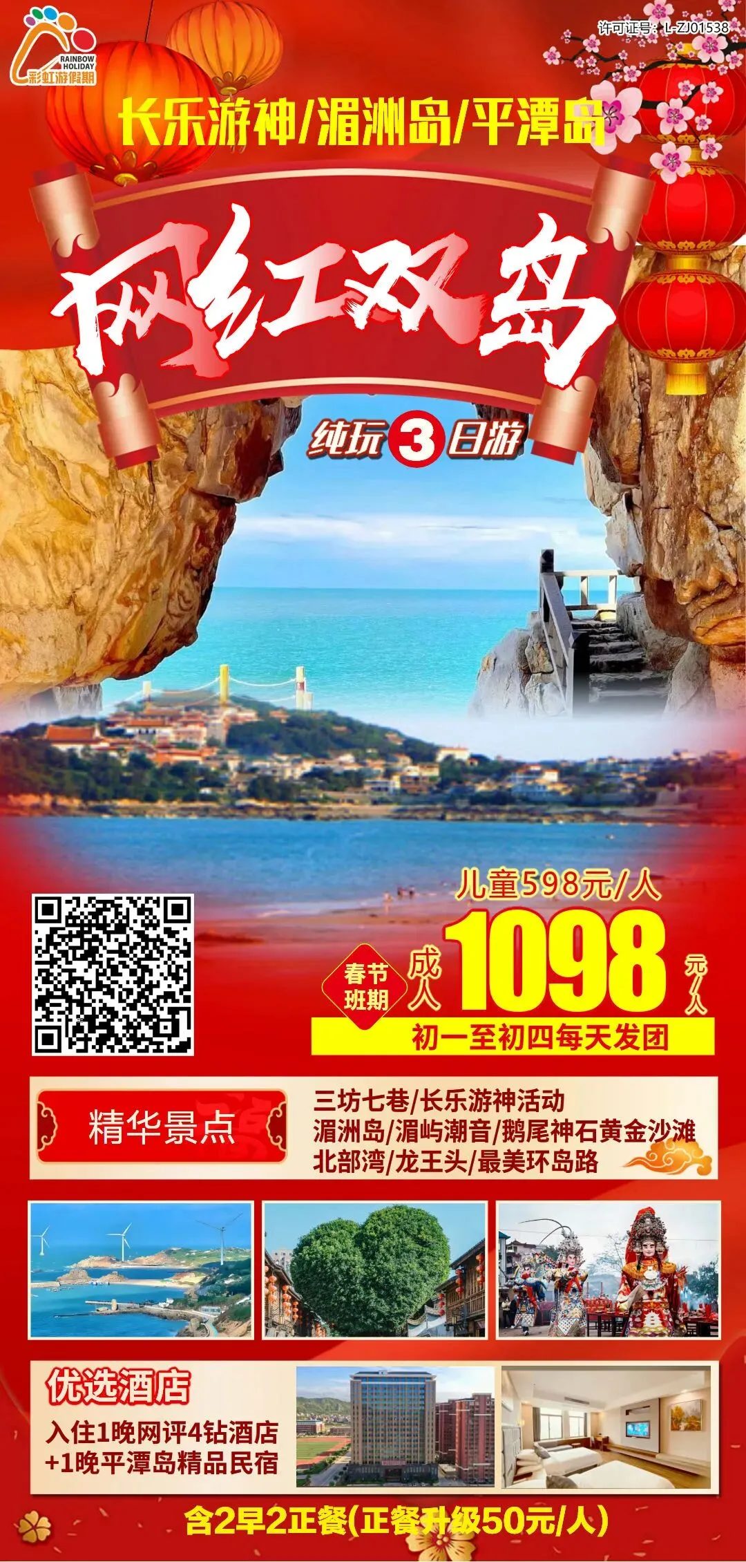 6.【网红双岛】——福州长乐游神活动、打卡湄洲岛/平潭岛海岛风光纯玩3日游(入住1晚网评4钻酒店+1晚平潭岛岛上精品民宿)