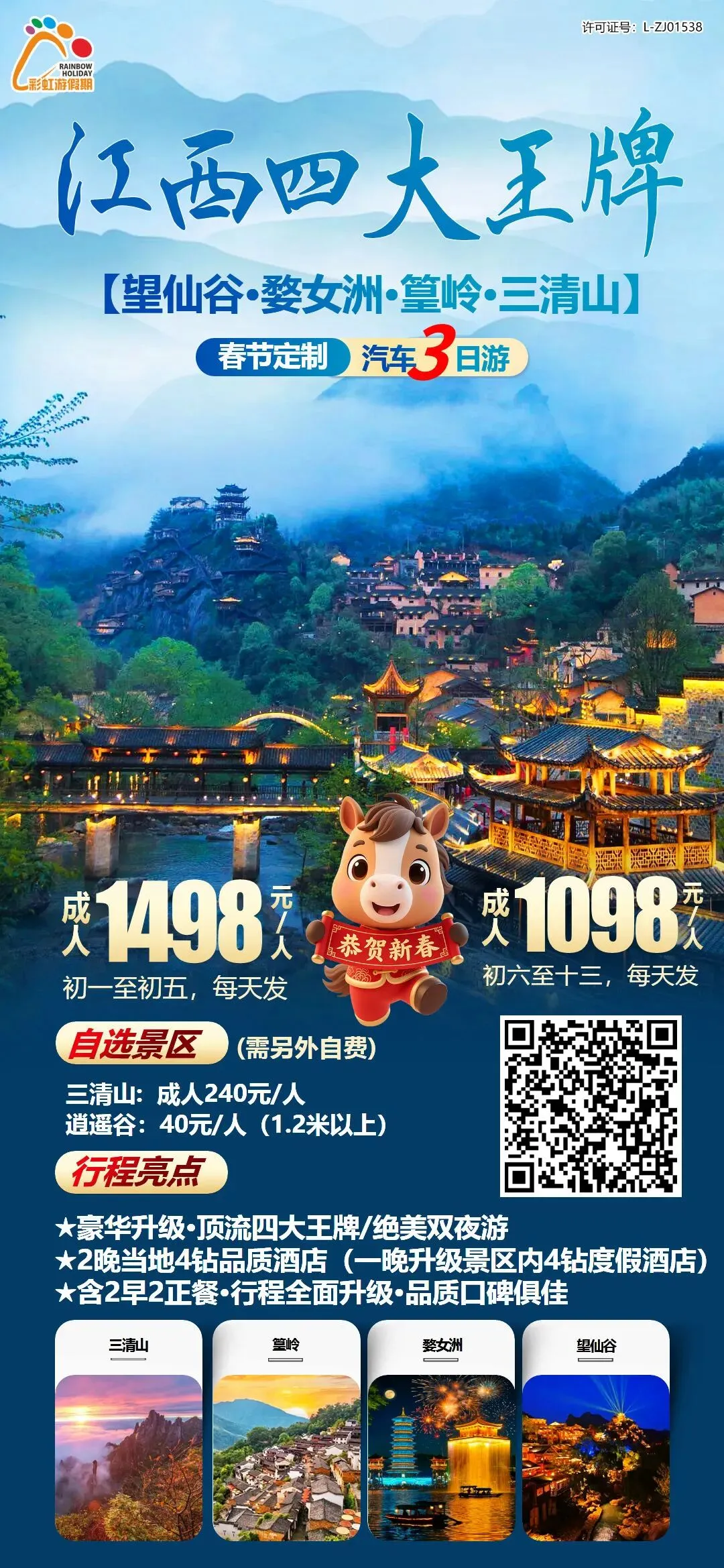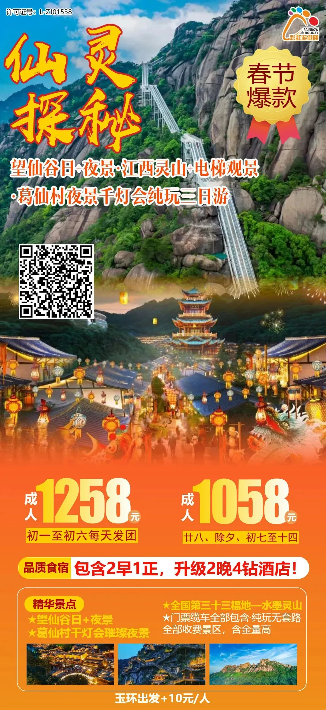 14.【春节爆款·仙灵探秘】 江西望仙谷日景+夜景·江西灵山「电梯懒人爬山」·葛仙山祈福·葛仙村夜景千灯会·休闲纯玩3日游(一价全含无自费)