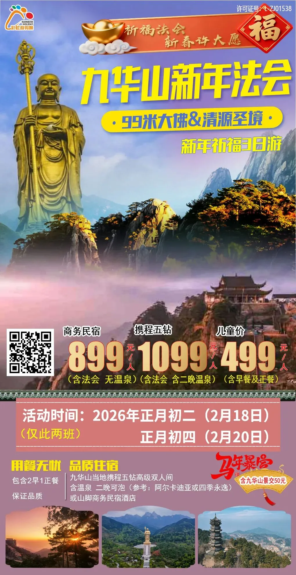 20.【新年.祈福】九华山·99米大佛&清源圣境·新年法会三日游 地藏道场 莲花佛国--九华山 * 祈福法会*新春许大愿