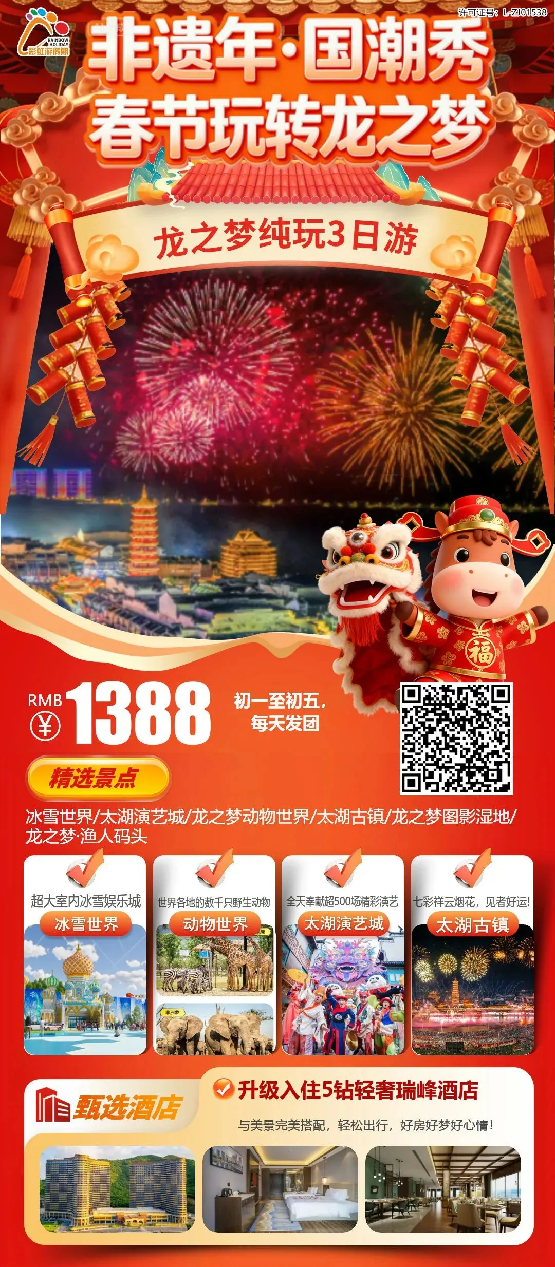 21.【“非遗年·国潮秀”春节玩转龙之梦】——太湖龙之梦冰雪世界、动物园、太湖演艺城、图影湿地纯玩3日游(升级入住5钻轻奢瑞峰酒店)
