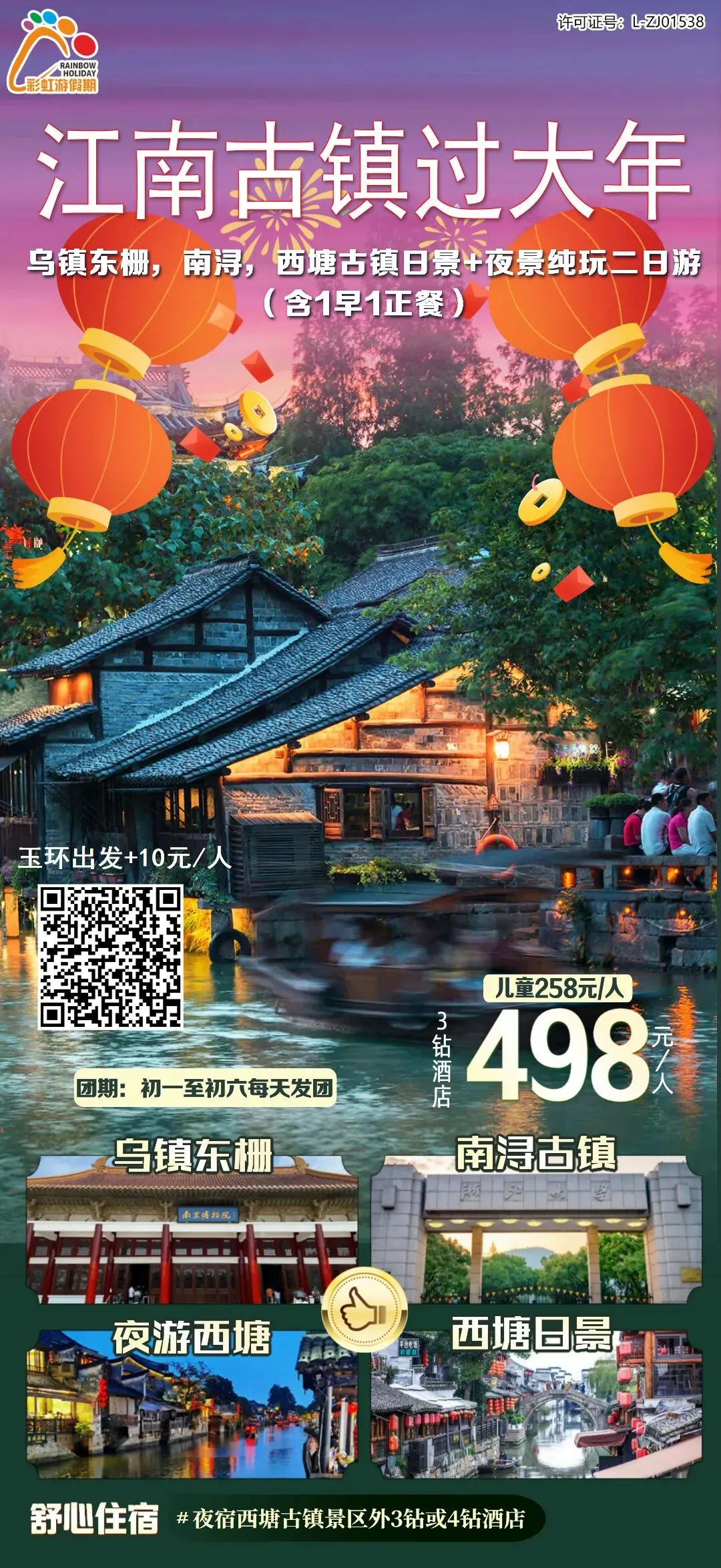 3.【江南古镇过大年】乌镇东栅,南浔古镇,西塘古镇日景+夜景纯玩2日游(含1早1正餐)