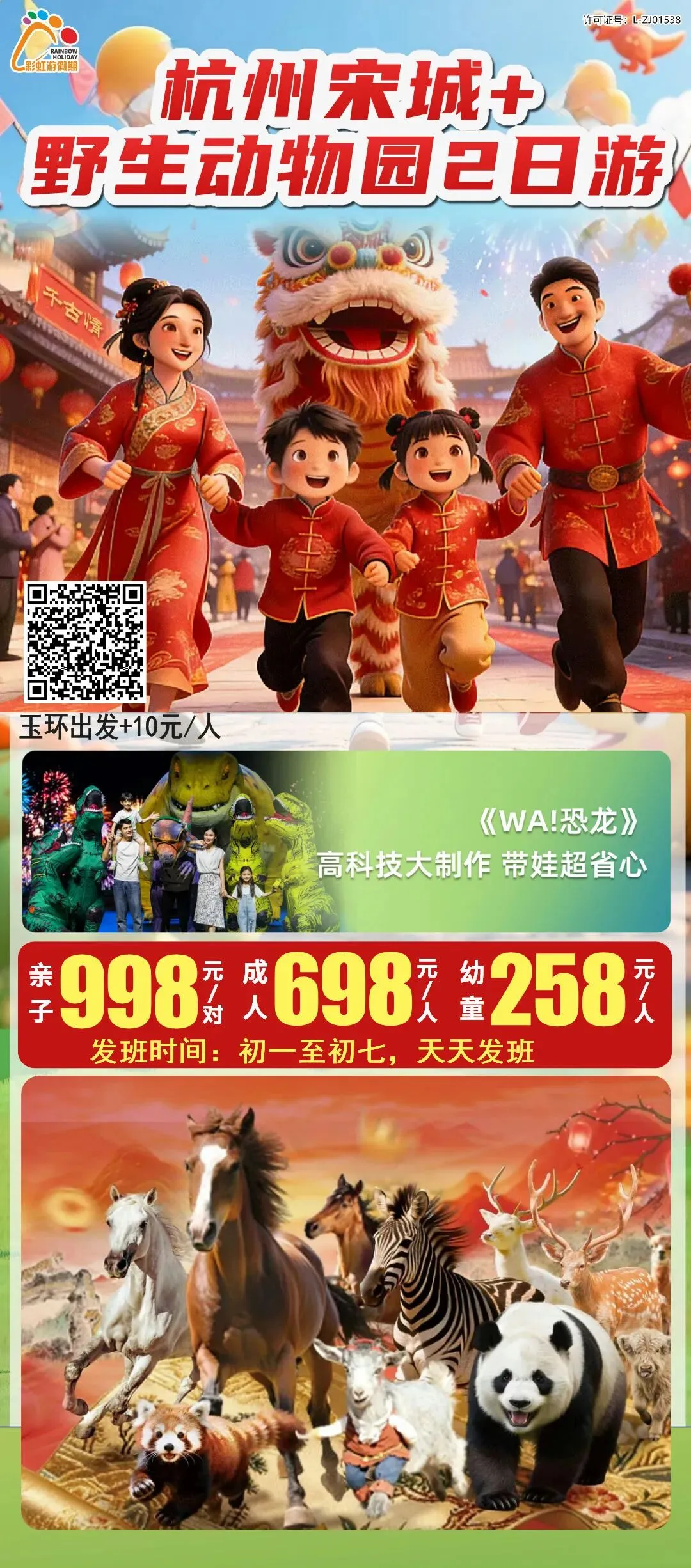 5.【春节杭州】杭州野生动物世界、宋城日景+夜景深度纯玩2日游