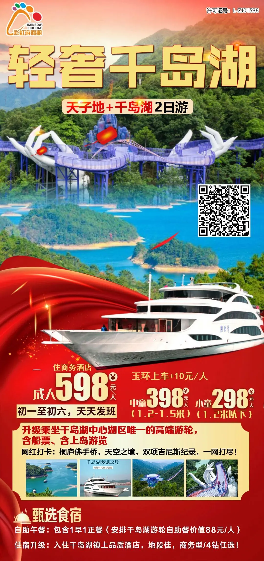 6.【轻奢千岛湖】天子地梦幻乐园、千岛湖豪华休闲游轮 纯玩2日游(含价值88元的游轮自助餐)