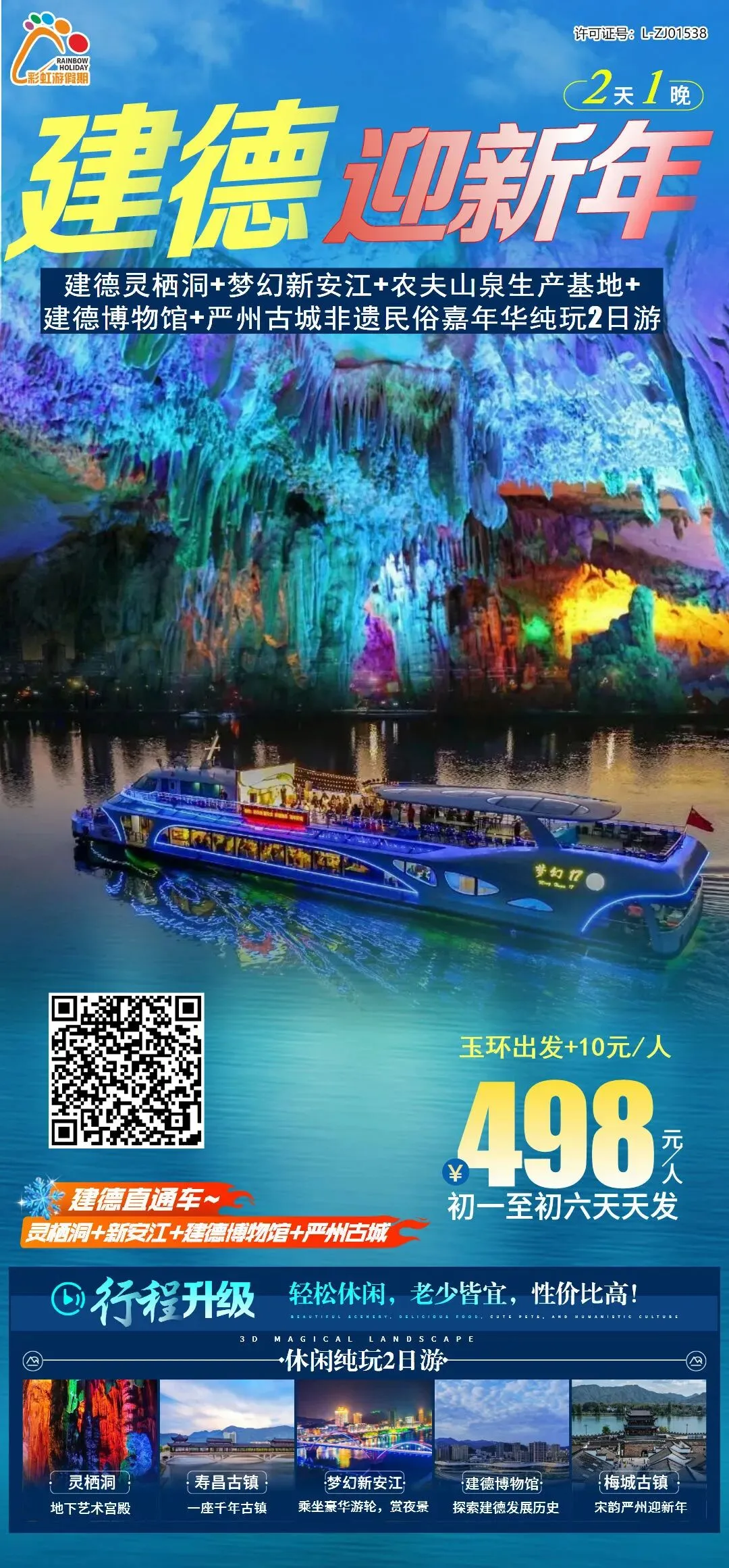 7.【建德直通车—宋韵严州迎新年】 建德灵栖洞+梦幻新安江+农夫山泉生产基地+建德博物馆+严州古城非遗民俗嘉年华 休闲纯玩2日游(0购物0自费)
