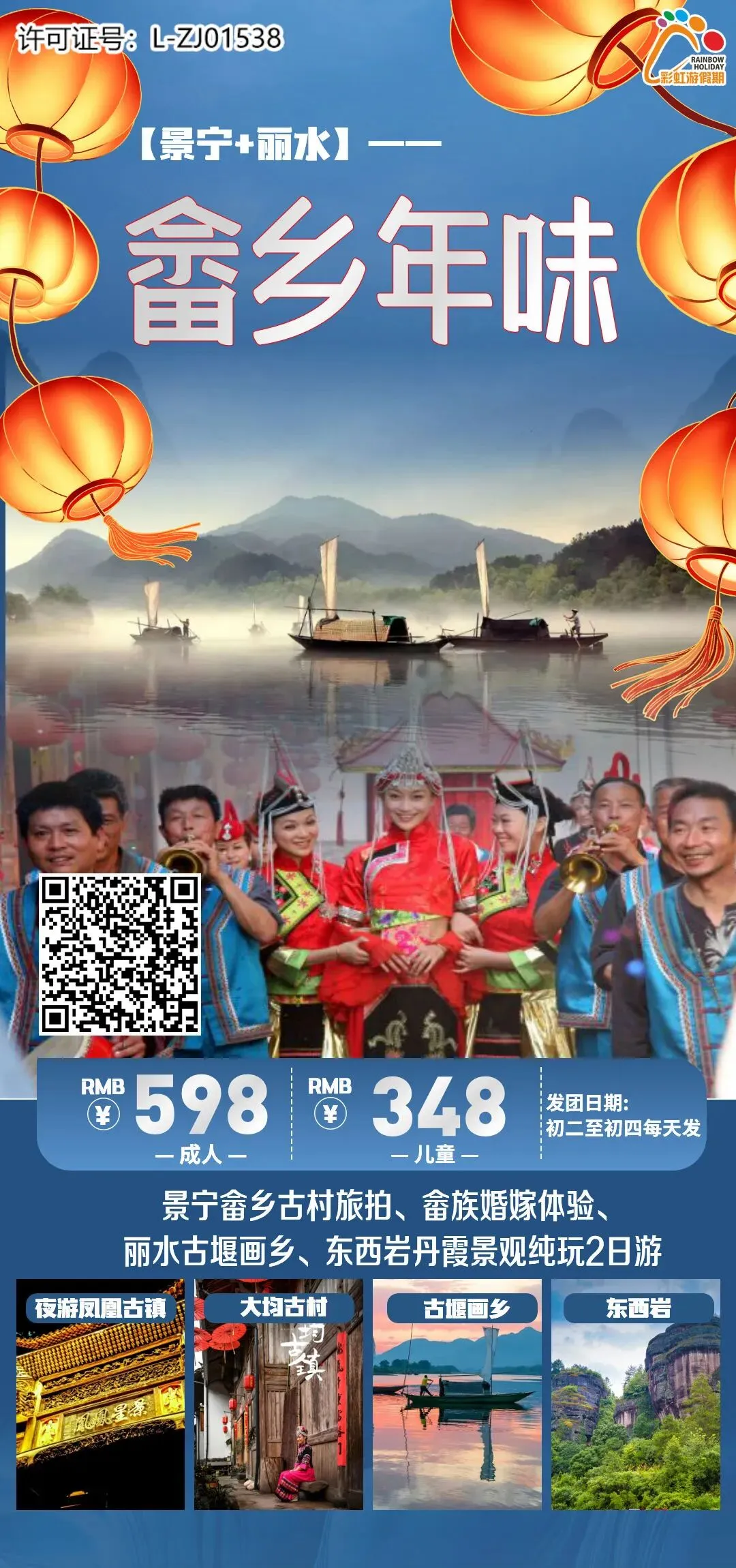 10.【畲乡年味】——景宁畲乡古村旅拍、畲族婚嫁体验、丽水古堰画乡、东西岩丹霞景观纯玩2日游