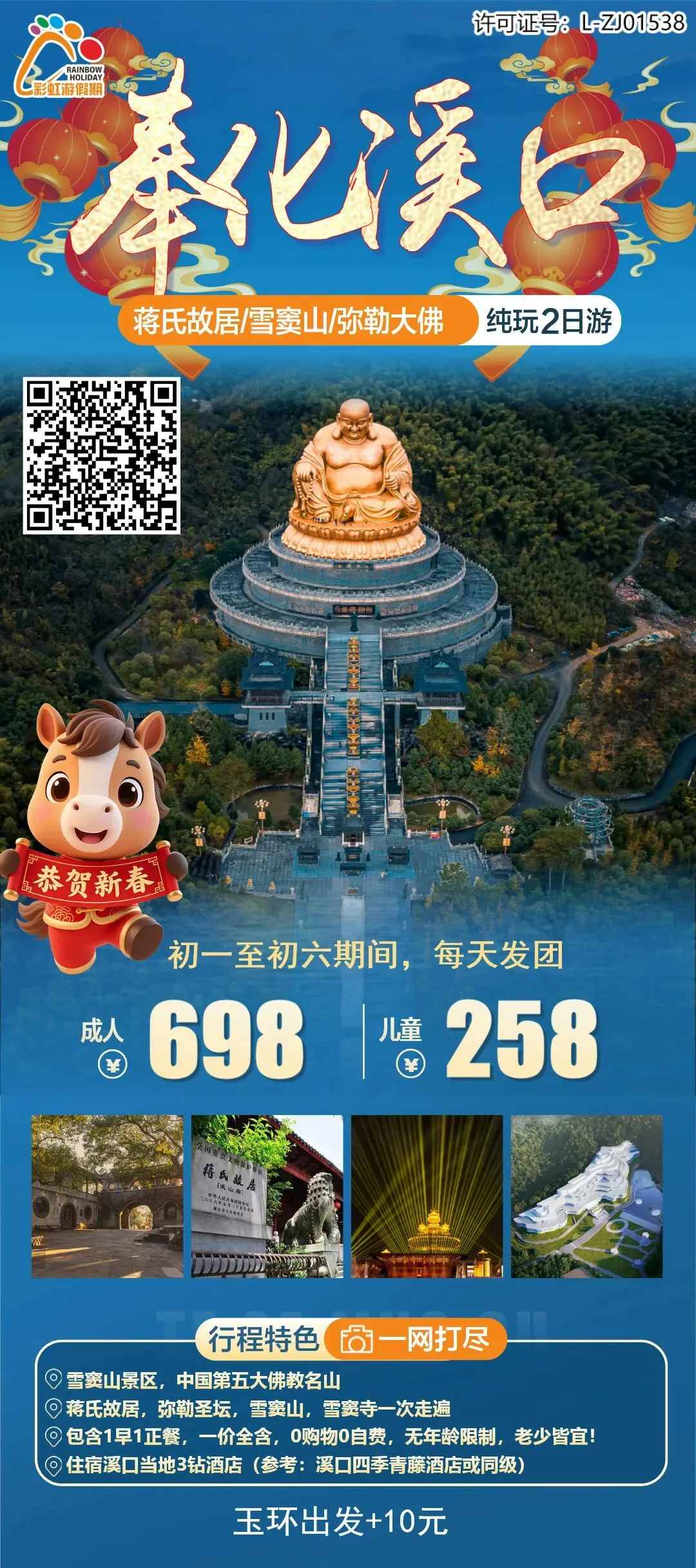 11.【奉化溪口全景游】宁波奉化溪口5A统票纯玩2日游 (蒋氏故居+雪窦山+人间弥勒大佛+弥勒圣坛夜景灯光秀+弥勒博物馆)