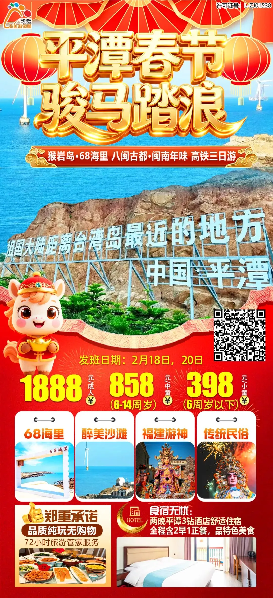 3.【平潭春节·骏马踏浪】猴岩岛·68海里 八闽古都·闽南年味 动车三日游