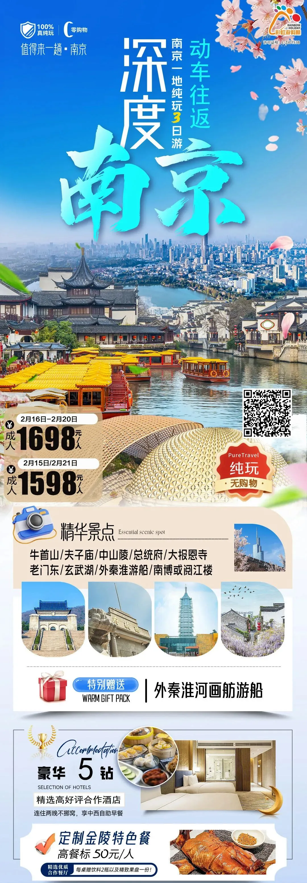 4.值得来一趟南京·深度三日游 【南京9大景区+两晚连住:豪华5钻酒店+50元高餐标+纯玩0购物0自费;赠秦淮河游船】