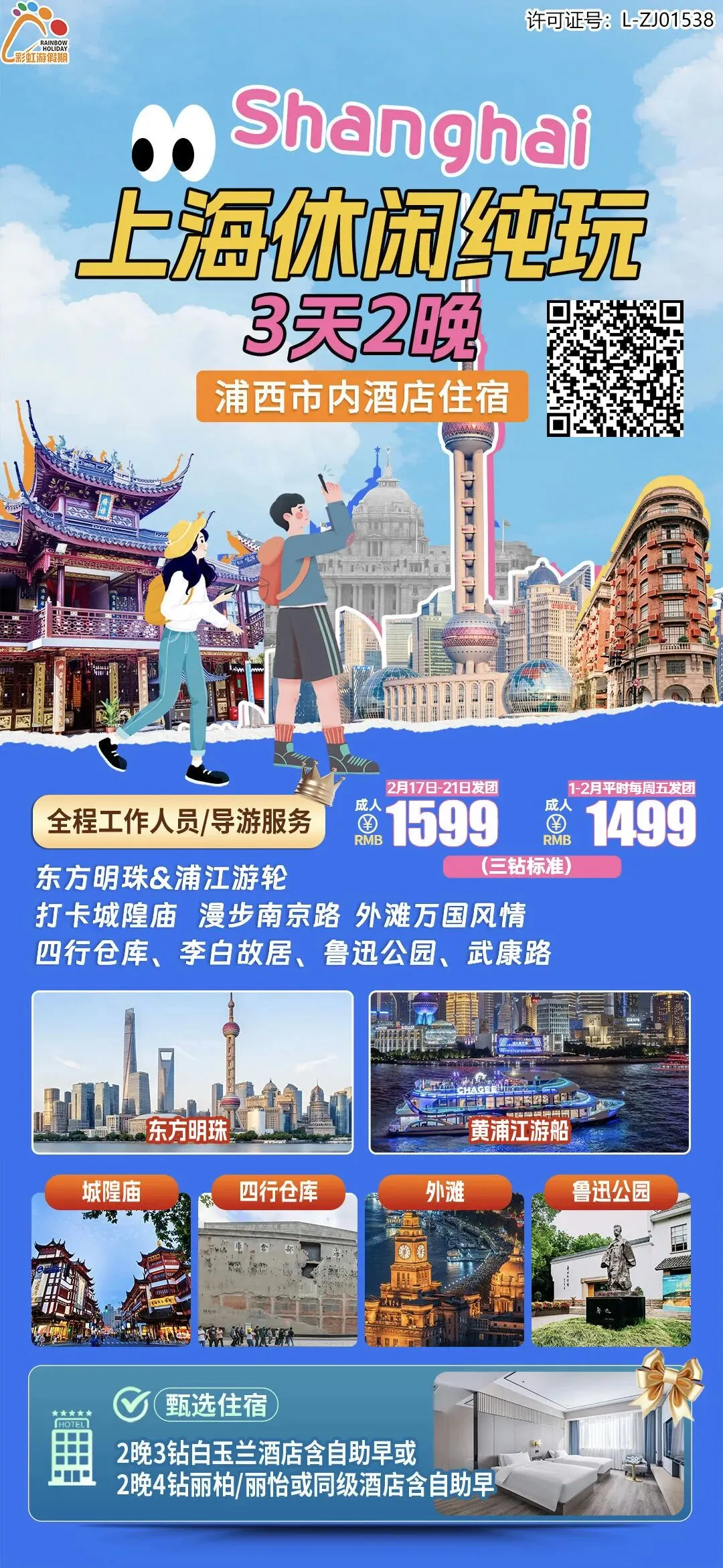 8.【高铁往返·上海休闲纯玩精华3日游】 东方明珠+黄浦江游轮+城隍庙+南京路+外滩+四行仓库+李白故居+鲁迅公园+武康路
