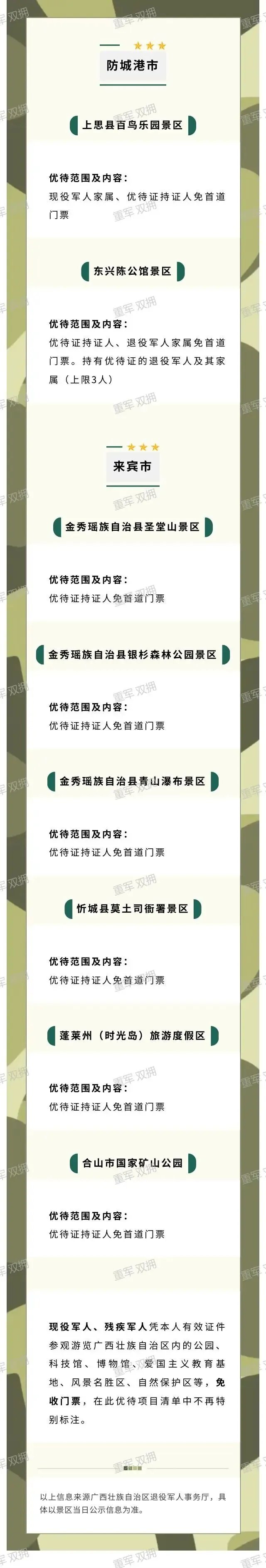 【景区优待】广西壮族自治区 防城港市 来宾市