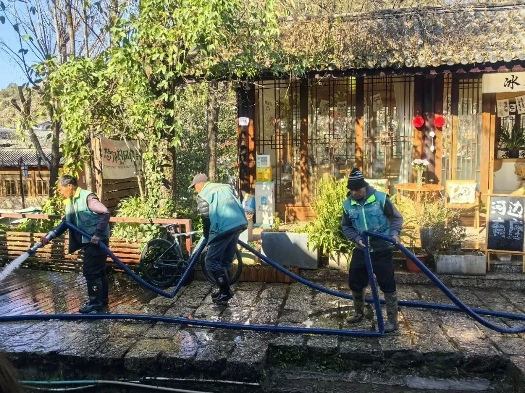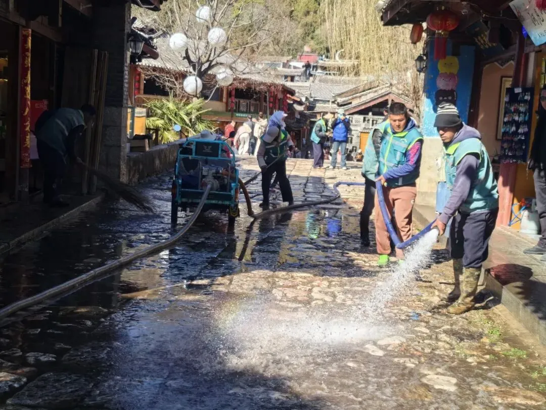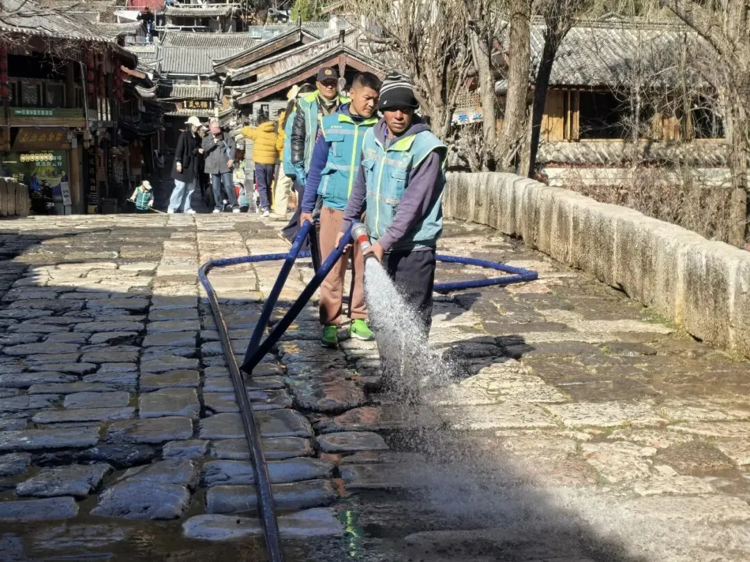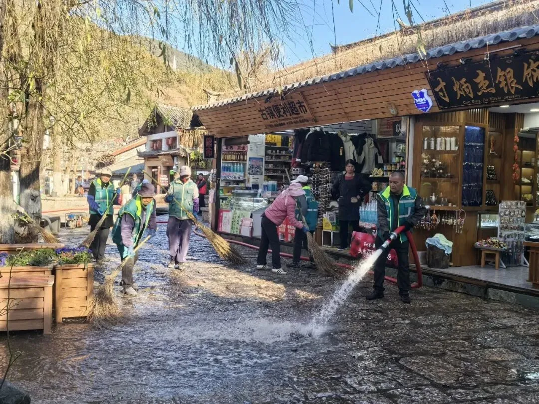 自区旅投公司负责束河古镇日常管护以来,高度重视环境卫生工作,不断加大维护力度,力求以干净整洁、文明有序的景区环境,迎接八方游客与丽江市民共度新春佳节。