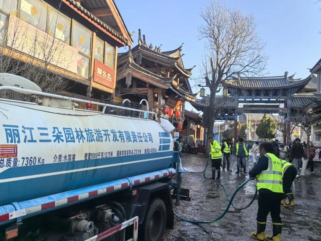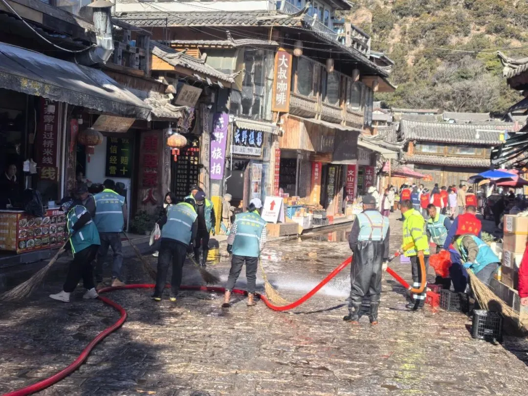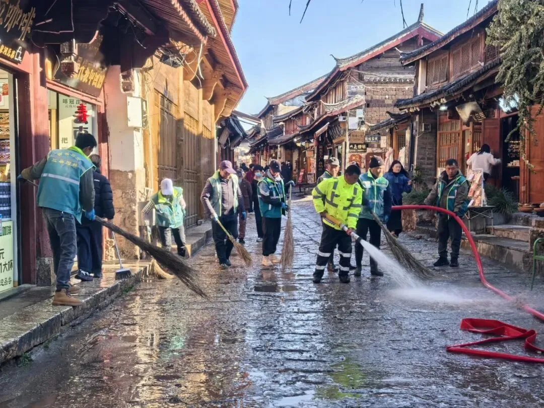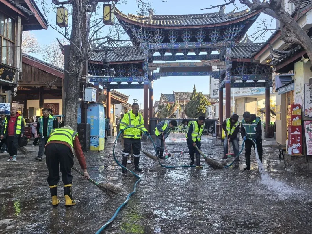 自区旅投公司负责束河古镇日常管护以来,高度重视环境卫生工作,不断加大维护力度,力求以干净整洁、文明有序的景区环境,迎接八方游客与丽江市民共度新春佳节。
