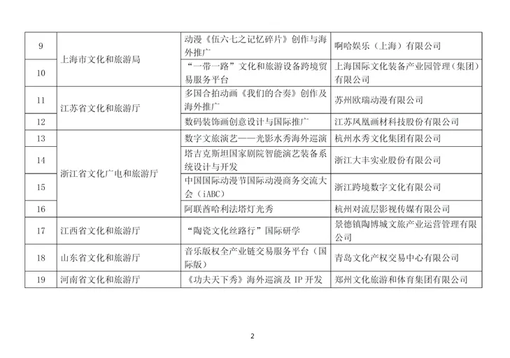 为全面贯彻落实党中央、国务院关于推动中华文化走出去,高质量共建“一带一路”的决策部署,根据《文化和旅游部办公厅关于征集2025年“一带一路”文化产业和旅游产业国际合作重点项目的通知》(办产业函〔2025〕366号),我部在各省级文化和旅游行政部门、部直属企业、国家对外文化贸易基地建设主体等单位推荐申报的基础上,经合规性审查、评审、公示等程序,确定了2025—2026年“一带一路”文化产业和旅游产业国际合作重点项目(具体见附件),现予以公布。