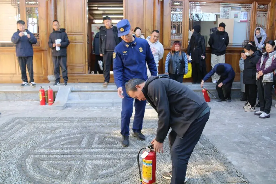 专业指导,干货满满。本次培训会特别邀请古城消防救援站2名消防员进行实操教学,结合木结构建筑火灾特点,详细讲解了消防设施使用、应急逃生技巧、初期火灾扑救方法,针对前期线路排查发现的问题,逐一拆解用电安全规范和隐患处置要点,用通俗易懂的语言、贴合实际的案例,让参会人员快速掌握实用的安全知识与操作技能。