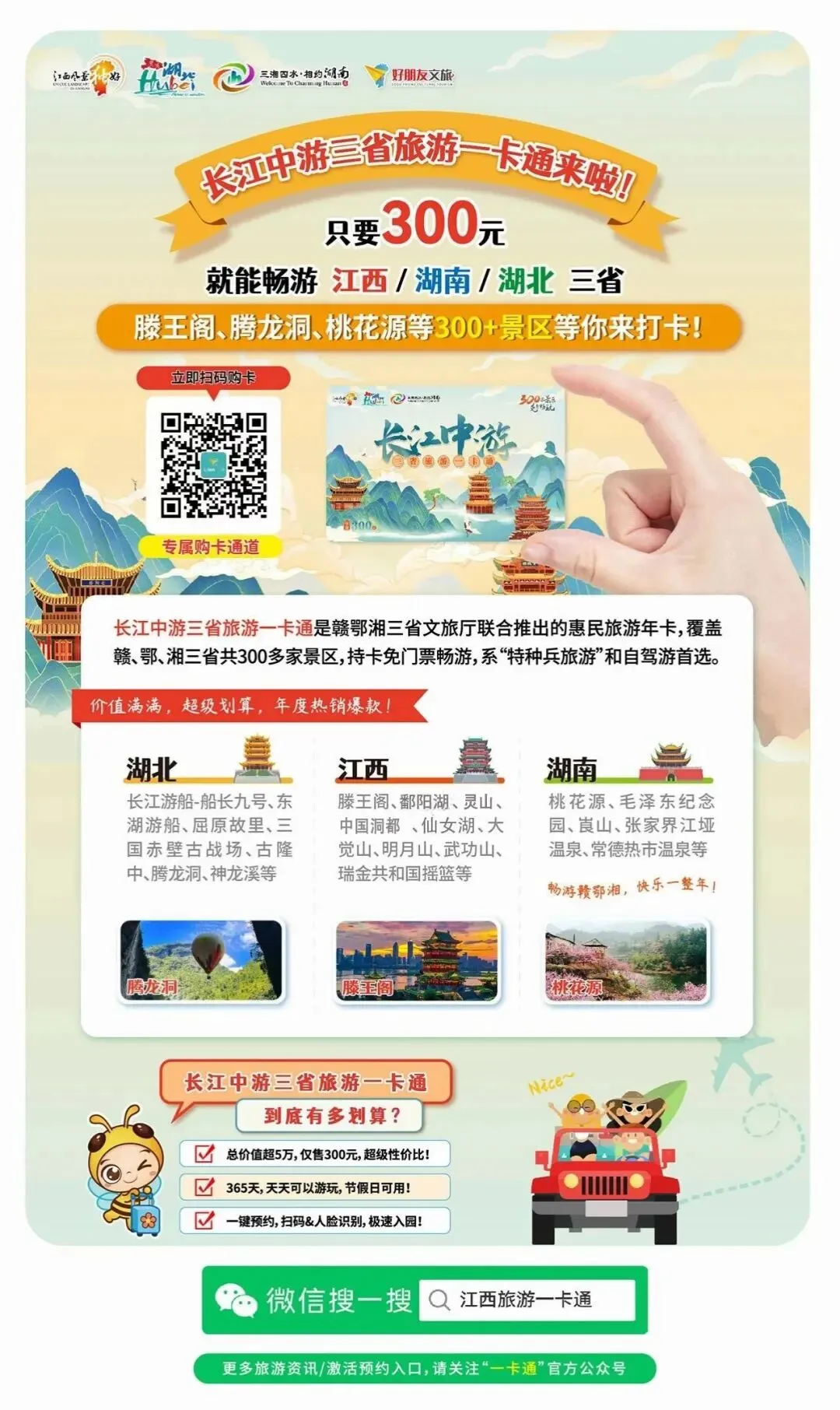 超值!“长江中游三省旅游一卡通”300元畅游滕王阁、武功山、腾龙洞等300+热门景区(景区列表更新于2025年12月29日)