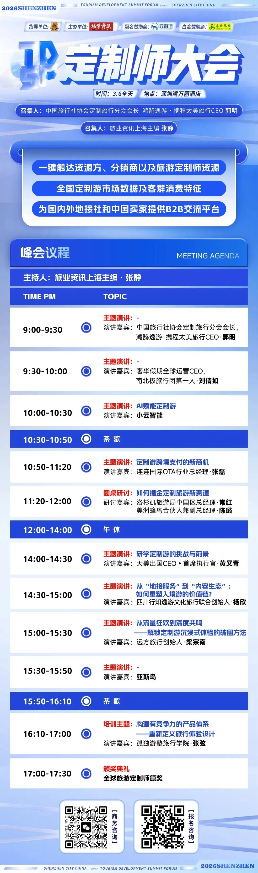今年旅业发展高峰论坛,设计七大细分赛道,其中定制师大会将在3月6日全天举行。