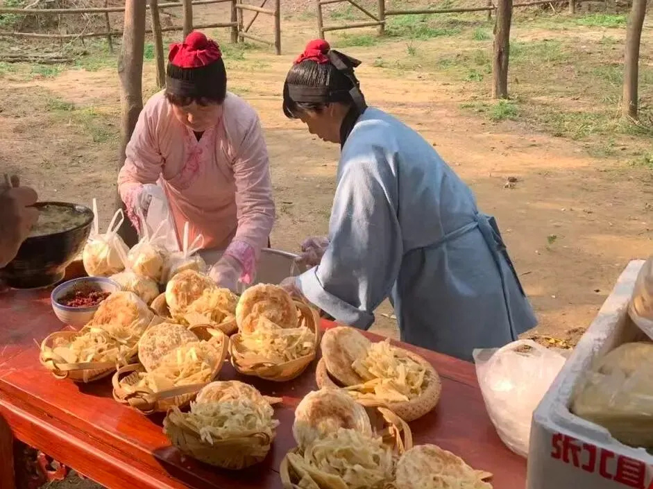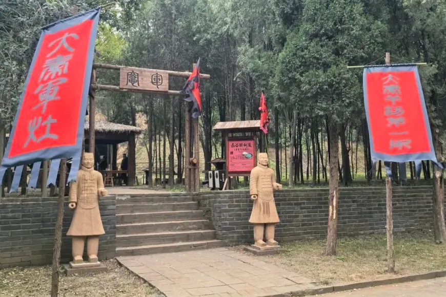 为提升游玩体验,函谷关景区在函关古道入口处特别设置了沉浸式餐饮点——大秦军灶。灶台上,巨大的行军锅正咕嘟冒泡,传承七道古法的羊汤熬得乳白醇厚、香气四溢。相传这是当年秦王犒赏三军时的同款美味,您不妨在此驻足,一品这穿越千年的醇厚滋味。
