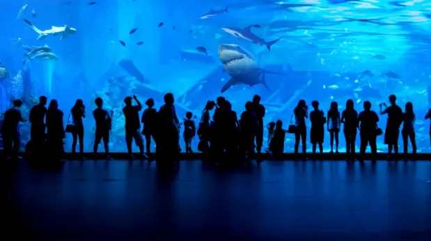 室内遛娃好去处!无论下雨还是寒冷天气都能快乐游玩。场馆占地面积5.8万平方米,拥有长达40米深达9米的深海实景展缸、270°全景天幕、白鲸音乐厅等重量级设施设备,同时拥有企鹅、白鲸、鲨鱼、水母等约300种、10000余只海洋生物