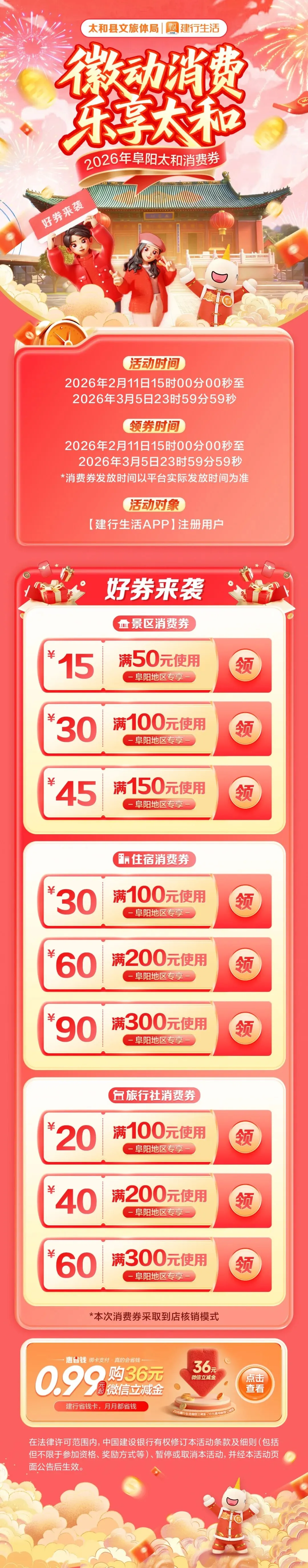 适用范围:仅限建行生活APP上架的太和县指定文旅商户
