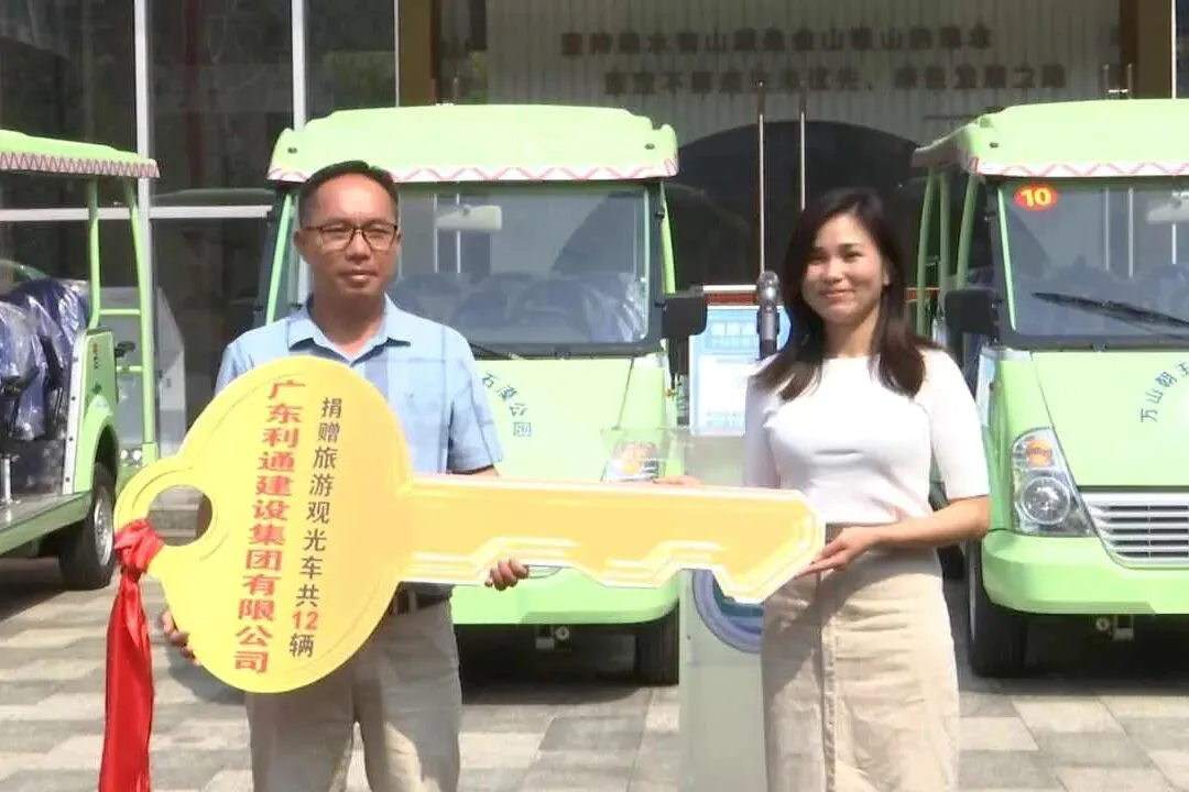 助力连南旅游发展!广东利通建设集团捐赠12台旅游观光车