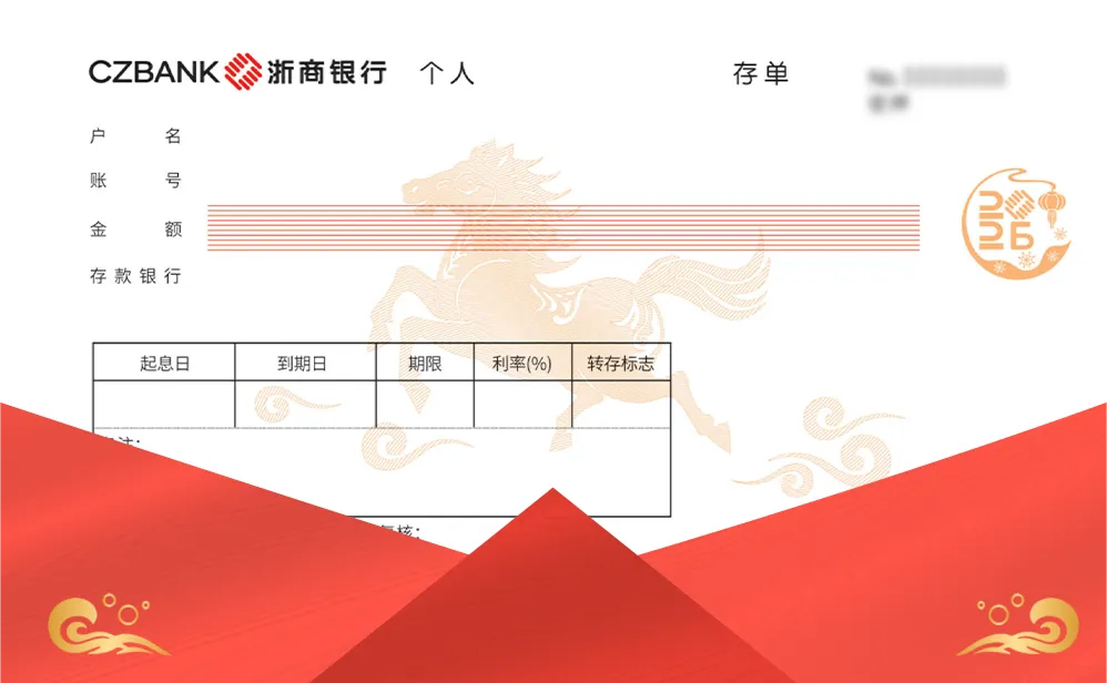 ▲浙商银行马年生肖存单,设计灵感源自农历祥瑞意象,奔马腾跃的勃发英姿结合吉祥纹样,寄托未来生活如骏驰骋的美好祝福。