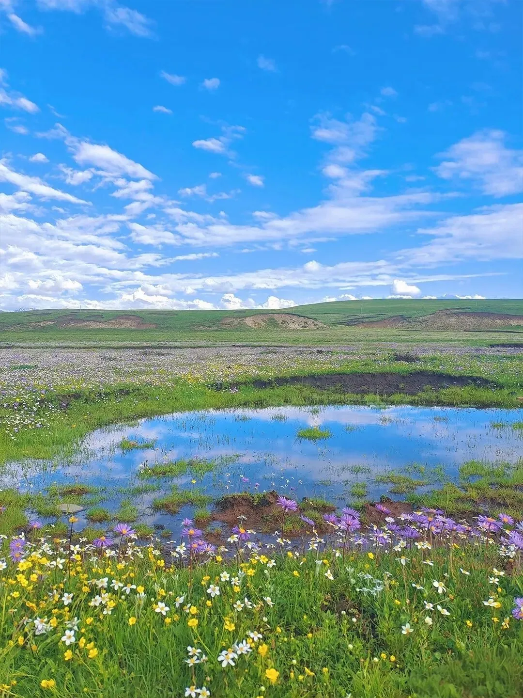 云是若尔盖草原天空的信使,在湛蓝的天空中轻轻飘荡,时而柔软,时而轻盈,仿佛在传递着某种信息。