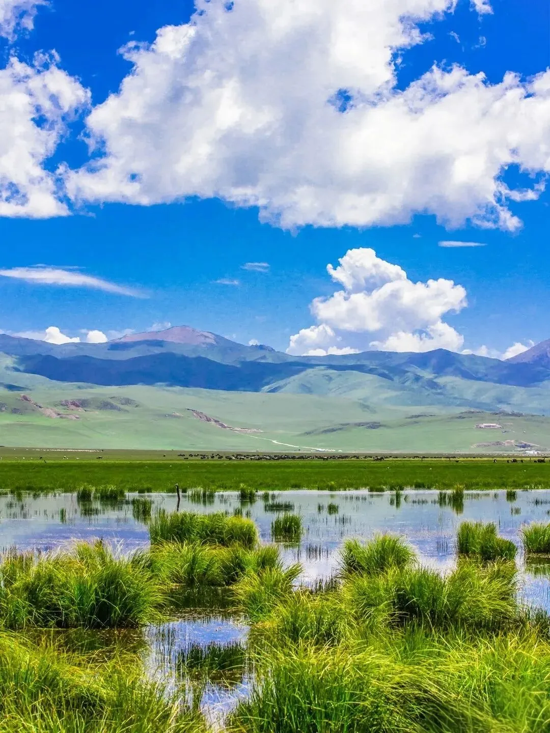 草是若尔盖草原最温柔的底色,也是生生不息的生命,一望无际的绿草铺向天边,像一块巨大的绿地毯,装点着整个高原,他用无边的绿,诉说着高原的壮美与神奇。