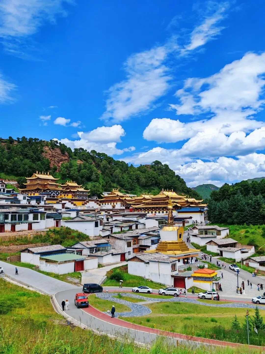 一个被誉为“东方小瑞士”的小镇——朗木寺镇。一条小溪把小镇分为四川和甘肃两部分,北岸(甘肃)为赛赤寺,南岸(四川)为格尔底寺。它们都是藏传佛教格鲁派寺院,很有异域风情。