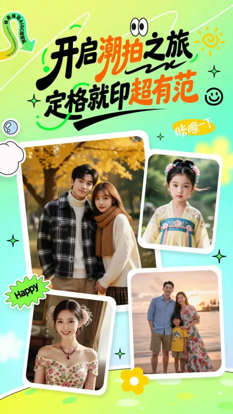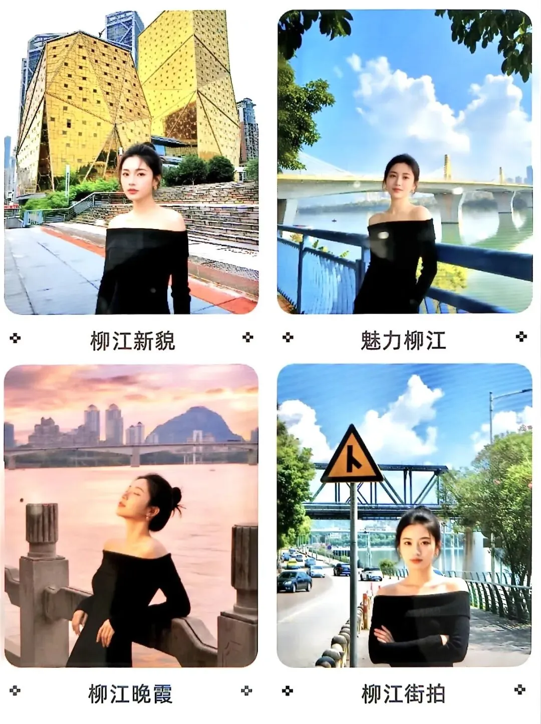 相框内置柳州城市剪影+百里柳江专属标识,自带城市IP!4K高清镜头精准捕捉,AI一键换装服饰,智能匹配氛围感背景,自动优化肤色与背景融合度,新手也能拍出杂志级封面大片!