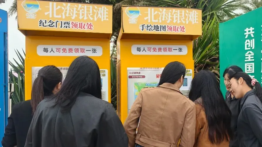 纪念门票自助机更是创意满满,纪念门票+DIY冰箱贴一键搞定,把银滩美景做成专属纪念品,好玩又有纪念意义。