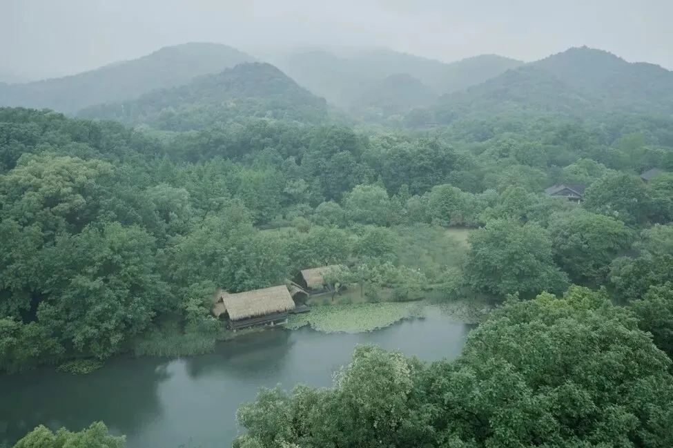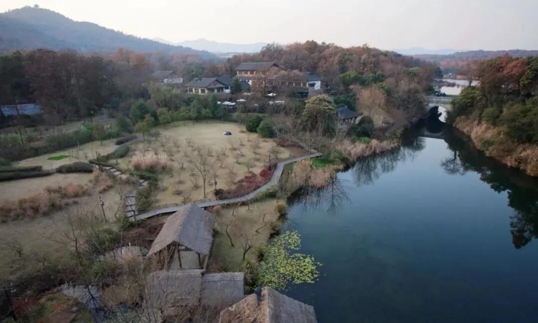 景区整体风貌充分考虑杭州西湖风景区历史文化传统,建筑设计延用杭州山地民居的建筑造型风格、主要建筑材料和传统建造工艺,景观营造上更是秉持了西湖风景区历史人文和自然相结合的理念。景区位于湖山过渡地带,由葱葱郁郁的湿地、质朴幽野的山林和明丽灵动的水系构成,加上富于杭州山地民居村落传统风貌的建筑设施与环境融为一体的处理手法,给人以山幽水明、世外隐逸之感,理想地表达了瞻仰先贤、闲逸赏景和回归自然的人文主题定位,同时也营造出了一个与西湖景区有机融合而又独具魅力的山水空间。