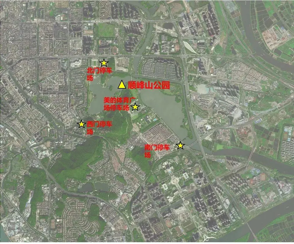 顺峰山公园共开放北门、西门、南门、美的体育广场等停车场,提供约2000个停车位。春节期间交警部门将设置临时停车区,预计约提供泊位约1500个。