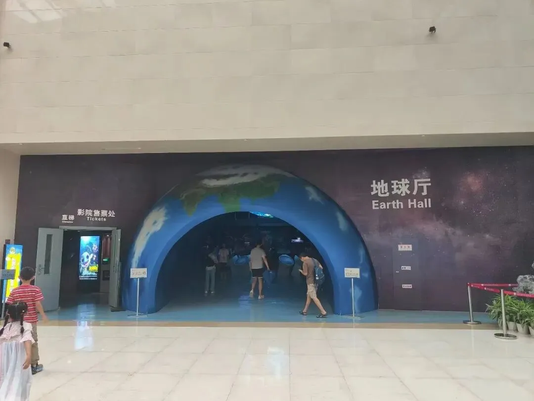 厅内核心展品为一件直径1.61米、重约5.7吨的天然水晶球。两侧分别设有描绘地球生命进化历程的汉白玉浮雕墙和提供咨询引导服务的总服务台。