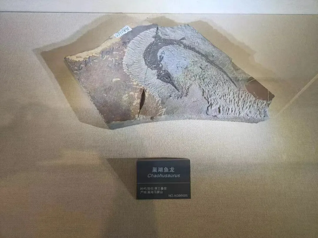 包括凌源潜龙、顾氏小盗龙、安徽黄山龙、巨两栖犀、盘乌喙骨马家山龙(模式标本)、巢县巢湖龙(正模、副模)、柔腕短吻龙(模式标本)、休宁伞形蛋、近鸟龙、季氏北票颌龙(模式标本)、安徽地质博物馆长嘴鸟(模式标本)、巢湖鱼龙、马家山龙鱼(模式标本)、含昆虫琥珀、满洲龟与甘肃鸟、铧鱼、许氏创孔海百合、带羽毛恐龙化石、以及各类古动植物化石如蟾蜍叶肢介、松果化石、欧泊菊石、恐龙蛋、蛙嘴翼龙、伊克昭龙、中华古果、菊石、木化玉、蒙城象牙等。