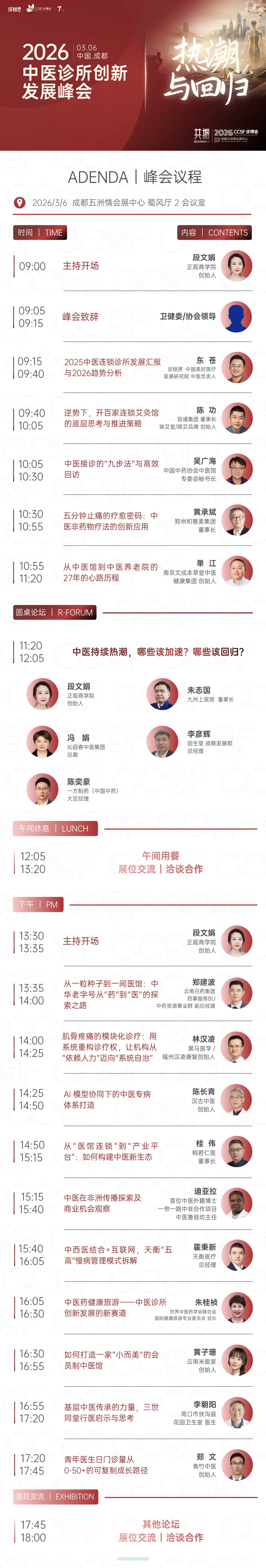 2026年3月5-7日,第七届诊博会在成都盛大启幕!特别设计了《2026 中医诊所创新发展峰会》,峰会将从创新、连锁、运营等维度,助力中医诊所跳出“重模式、低效率”的增长陷阱,欢迎参与~(点击下发图片可跳转报名)