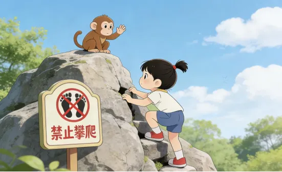④攀爬禁区,美景危矣,安全慎之!