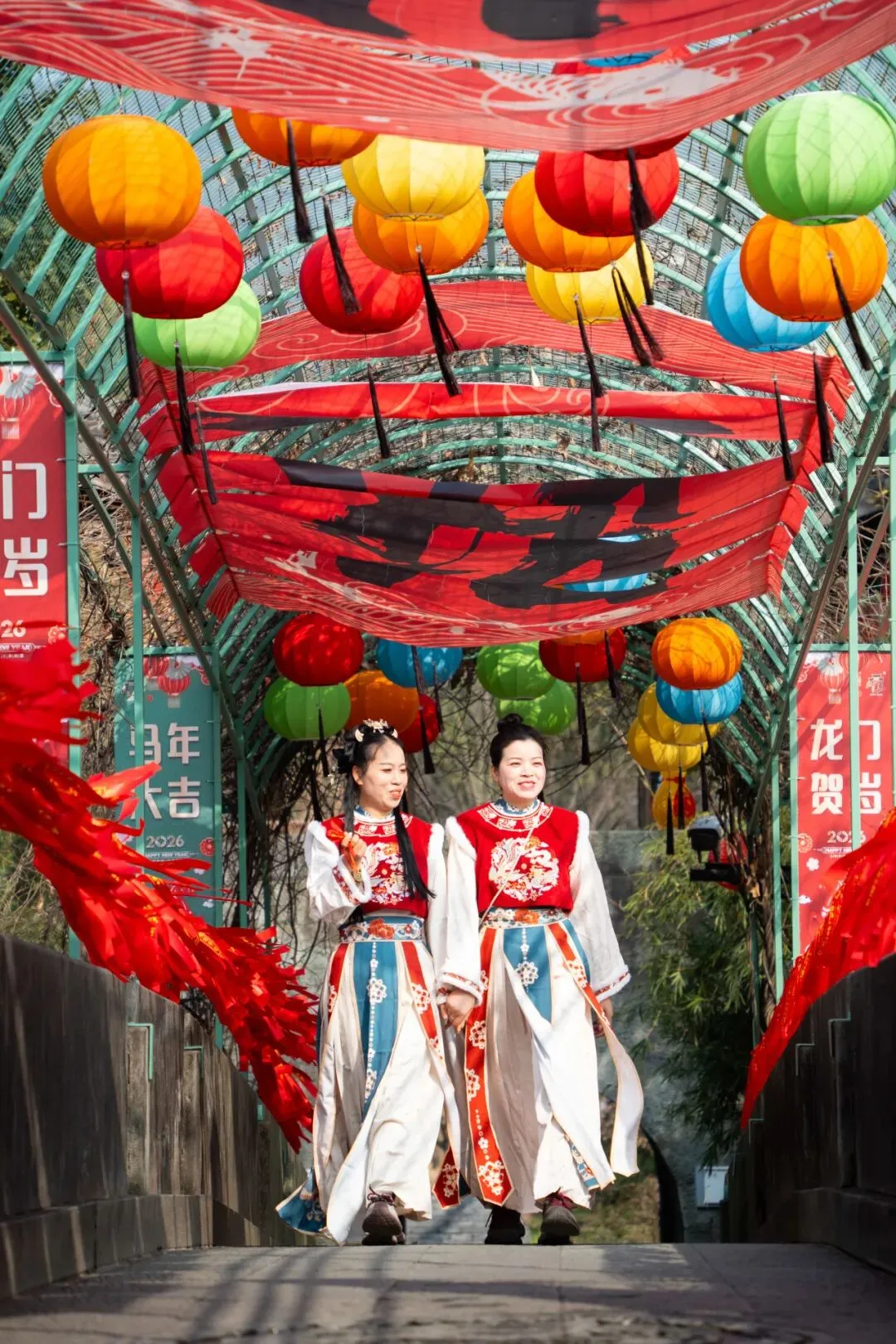 龙门驿年夜饭推出三种套餐,预订2月16日(除夕)至正月初六到店享用龙门家宴,可获赠全家福拍摄,定格新春团圆时刻;入住民国风龙门驿酒店,即赠古镇门票、“龙门纳福宝牒”集章打卡本及龙门通宝,沉浸式感受古镇年味。