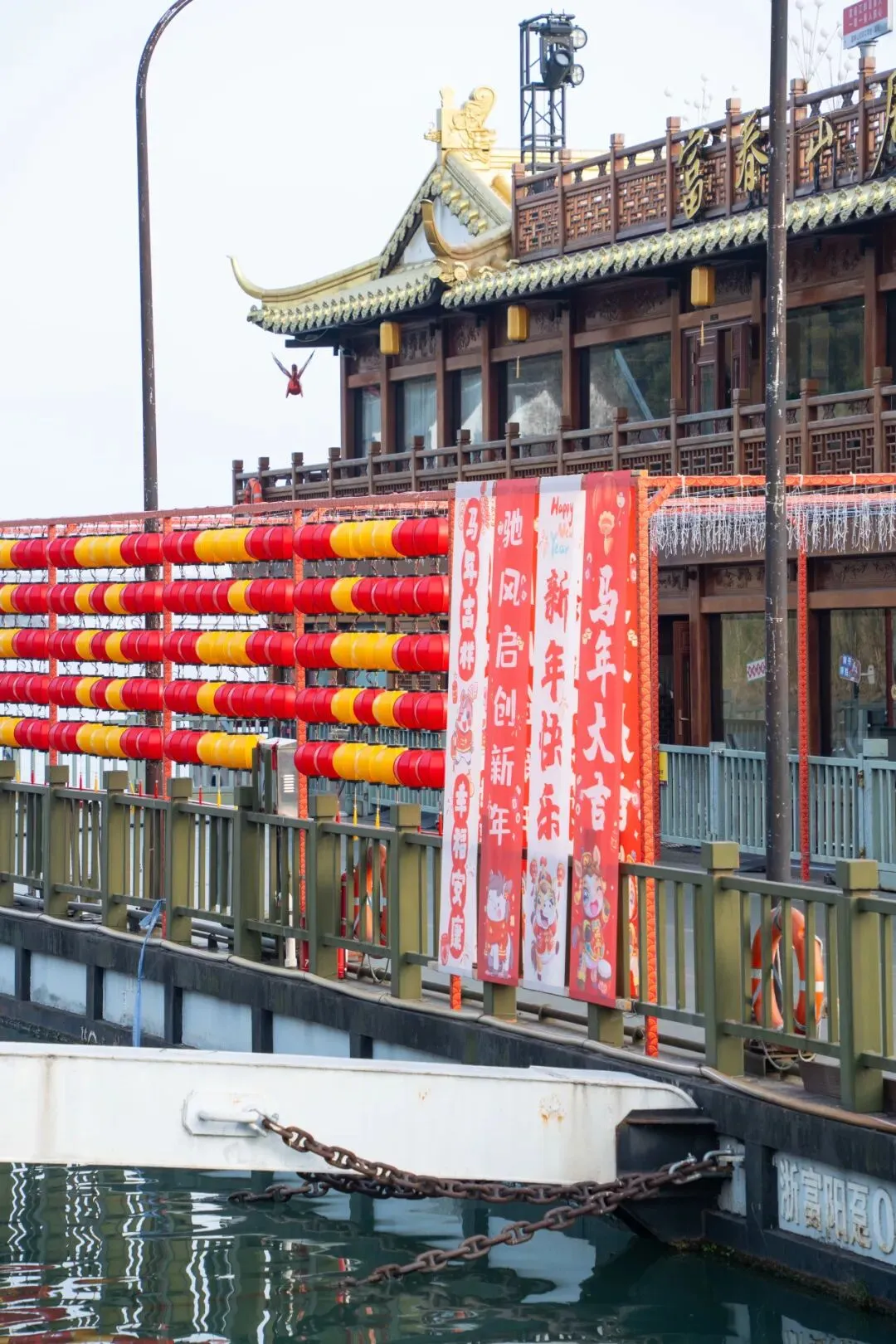 一马载福、二马携禄、三马添寿、四马聚喜,四盏红鬃飞马灯寓意满满,登船打卡,便是赴一场“好事”之约,解锁新春好彩头!