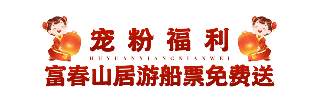 参与方式:关注【富阳文旅】公众号,于2月12日12:00前,在本文评论区留言,说说“春节你最想打卡哪个地方”,留言点赞前10名,每人可获得富春山居游船票1张!