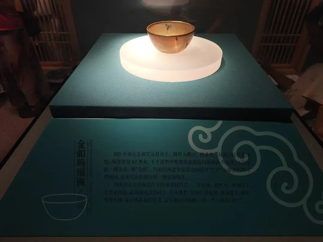 旨在萃选院藏古代工艺珍品,展现其艺术魅力与时代风貌。展览以古代工匠的巧夺天工为主线,通过呈现各类材质文物的独特造型、华美纹饰与精湛工艺,引导观众领略文物所承载的审美情趣与文化内涵。该厅重点展品包括宋代双龙镂空霞帔金坠、新石器时代玉琮、西汉描金彩绘云气纹朱雀攫蛇漆豆、南宋龙泉窑青釉炉、南宋葵花形金盏、元代贯耳玉瓶、元代菱花形凤纹银果盒、元代景德镇窑青白釉瓷塑人物造像、明代宣德青花花果纹大盘、清代象牙圆雕说书艺人、清代黄杨木雕铁拐李等。