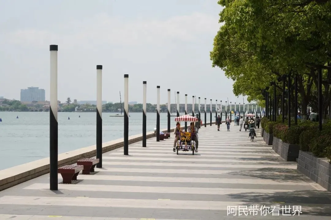 金鸡湖的特色是“混搭”——既有现代都市的繁华,又有江南水乡的温婉。