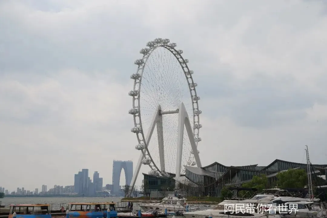 建筑奇观:东方之门(全球知名建筑孔门)、苏州之眼摩天轮(128米高,中国最高水上摩天轮)、文化艺术中心(苏州“鸟巢”)。