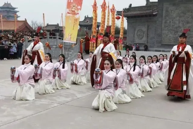 舞者身着华服,伴随《礼仪之邦》古乐翩跹起舞,迎接八方来客,一步一礼、一舞一仪,这不仅是一场精彩的国风表演,更是一次穿越时空的迎财互动体验。游客可跟随舞者步入景区,在翩翩衣袖与典雅乐声中,感受中华礼乐文化的端庄与优美,开启一场“财运相伴”的吉祥之旅。