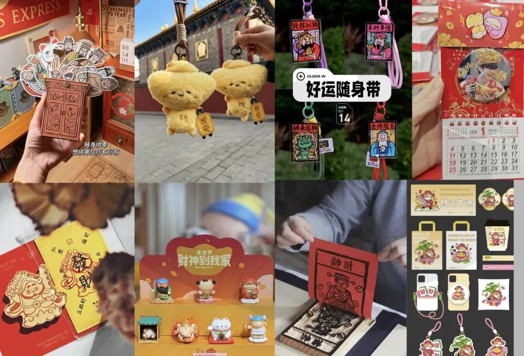 祈福迎财区:五路财神NPC互动、悬挂祈福牌、祈福带,迎财纳福,体验红火年味。