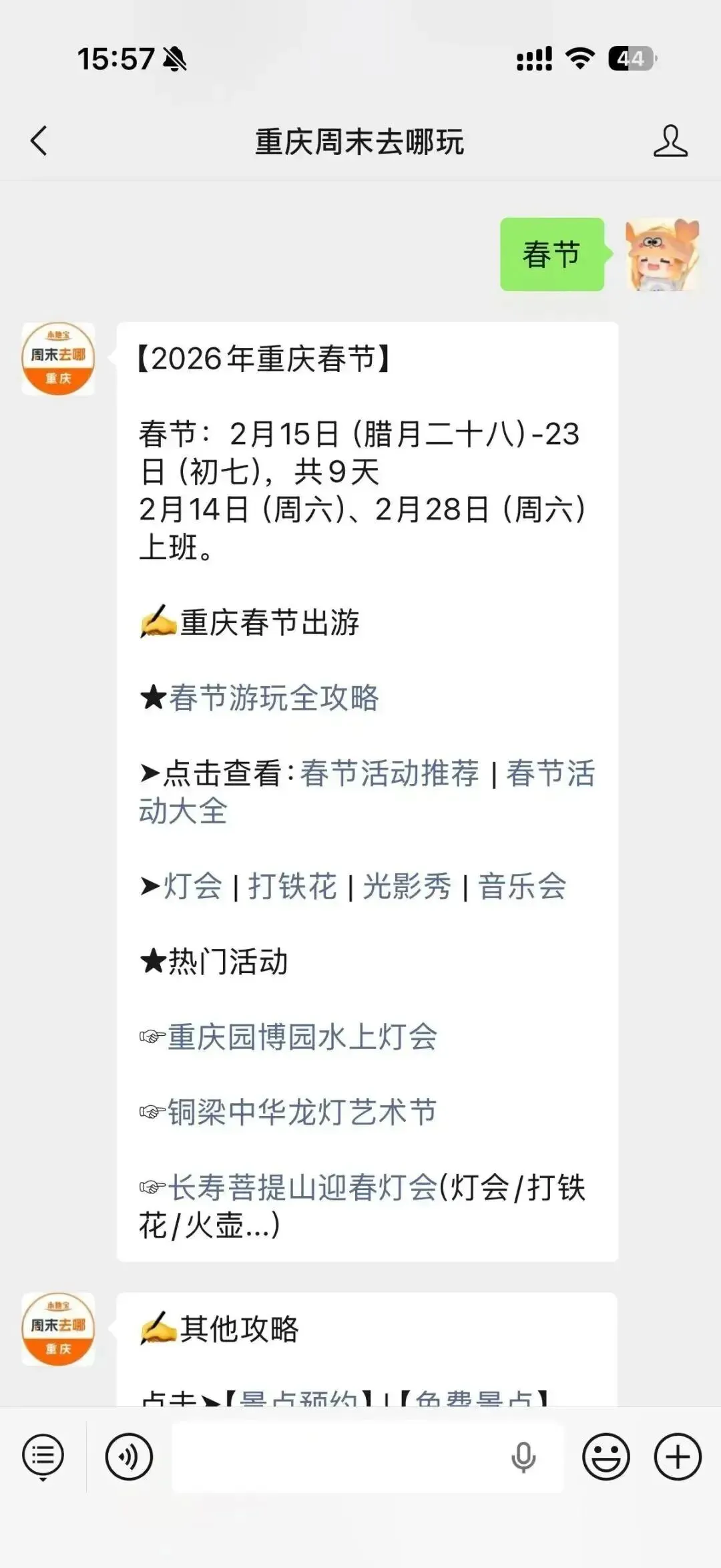 在对话框输入并发送【春节】获取