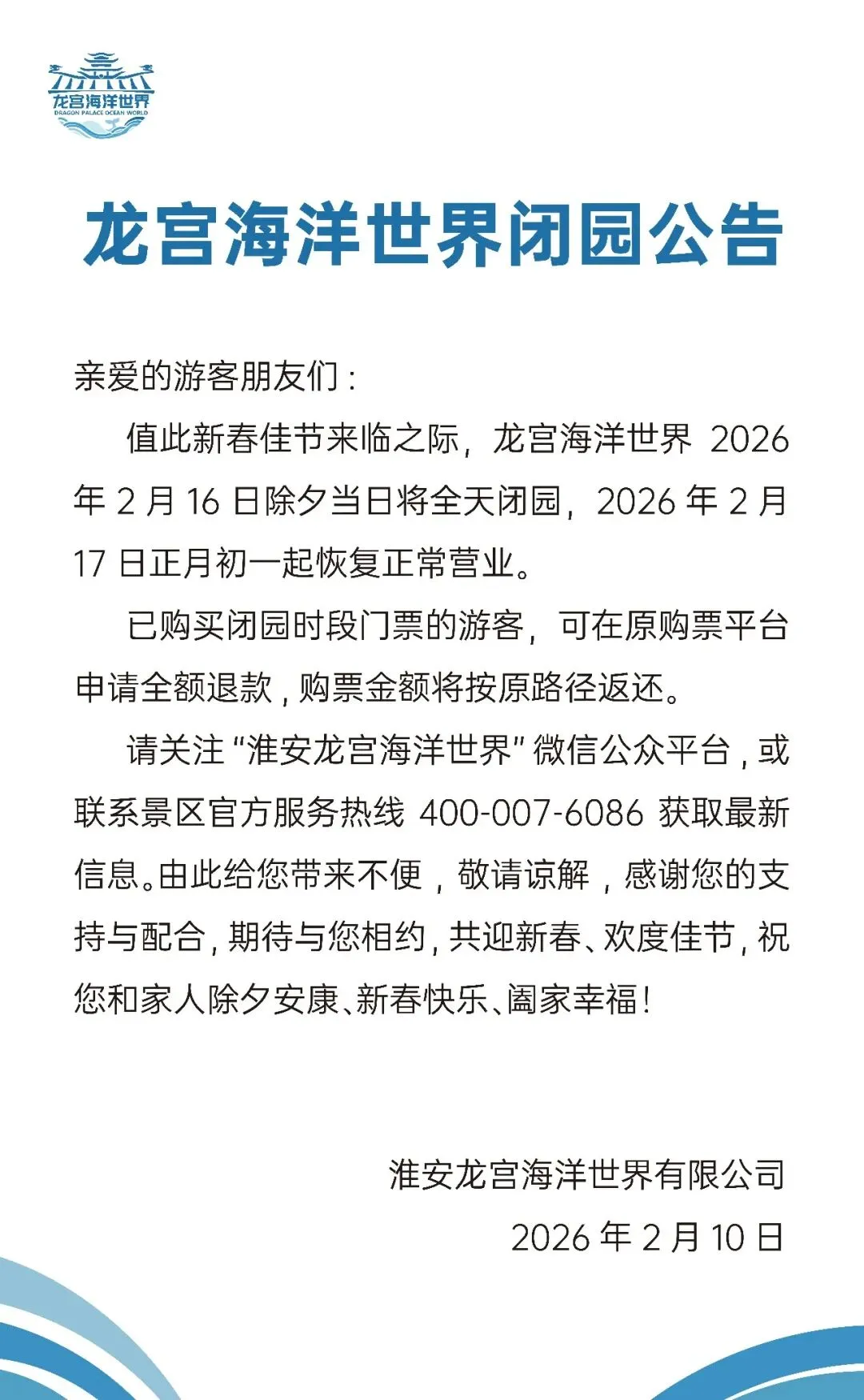 龙宫海洋世界景区闭园公告