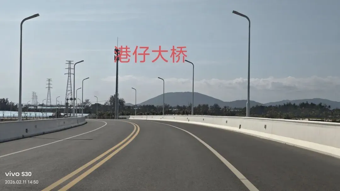 乡道修善比国道都漂亮,宽敞整洁,又又进入无名小道,七转八转又转到海南环岛理由公路,港仔大桥下道,