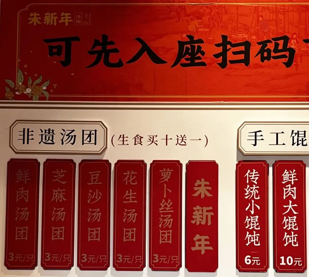 朱新年点心店非遗汤圆都是阿姨们当场在店里手工制成,新鲜看得见,三元一个,价格实惠,生食还满十送一。